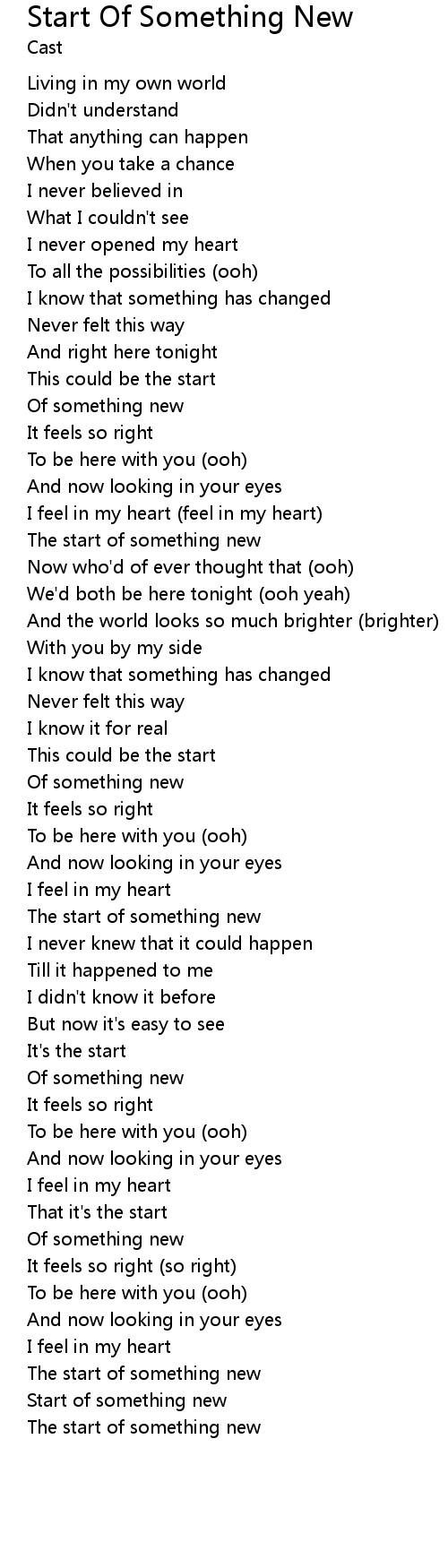 Most Popular 10 Start Of Something New Lyrics. You're reading entrepreneur middle east, an international franchise of entrepreneur media. Not knowing the name of a song can be frustrating, and it can make an earworm catch on even more. In the modern era, people rarely purchase music in these formats. Kenny chesney illustrates what it means to go through the fear of not being recognized by your loved one who is suffering from alzheimer's. Everybody from madonna to prince and whitney to the beach boys gave us hits that a.
